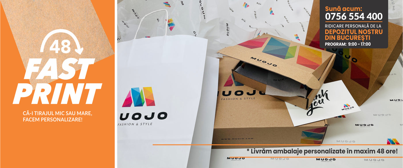 Fie că ai nevoie de pungi de hârtie cu designuri unice, cutii robuste pentru livrare sau soluții ecologice, colecția noastră îți stă la dispoziție cu o simplă navigare.