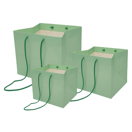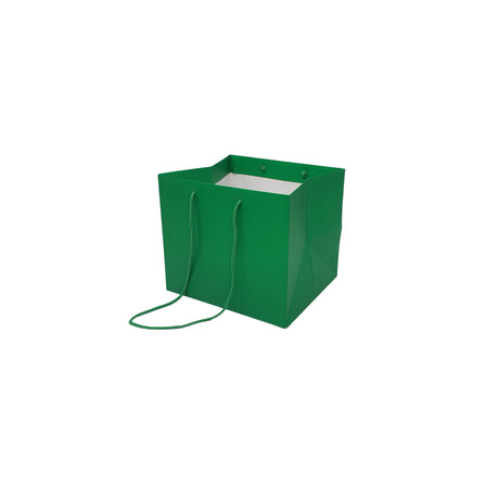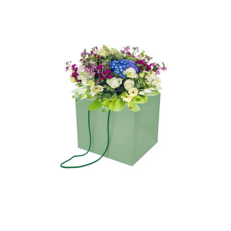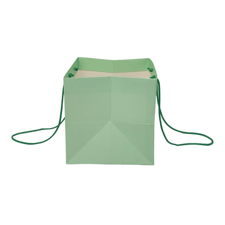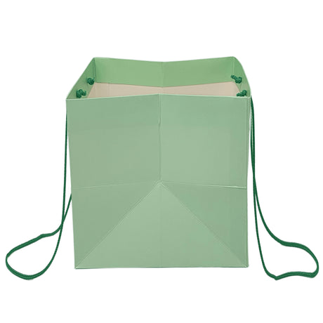 Pungă hârtie VERDE PAL pentru flori cu mânere din șnur textil 16 x 17(H) x 15cm