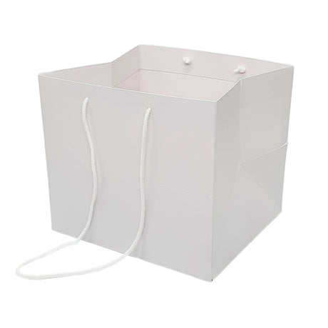 Pungă hârtie ALBĂ pentru flori cu mânere din șnur textil 16 x 17(H) x 15cm