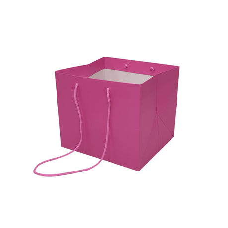 Pungă hârtie ROZ pentru flori cu mânere din șnur textil 23 x 20(H) x 20cm