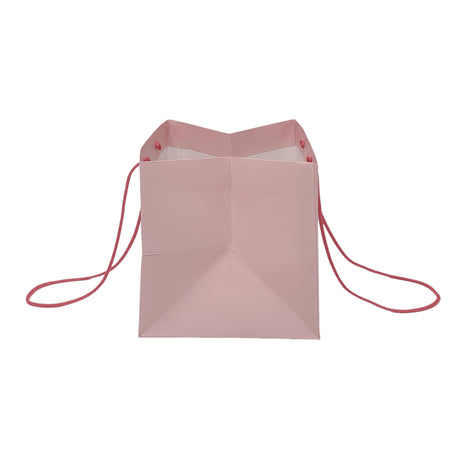 Pungă hârtie ROZ PAL pentru flori cu mânere din șnur textil 16 x 17(H) x 15cm