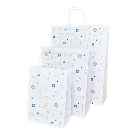 Pungă carton ALB pentru flori - Model Floral Mono Dots cu mânere din șnur textil 11 x 18,5(H) x 11cm