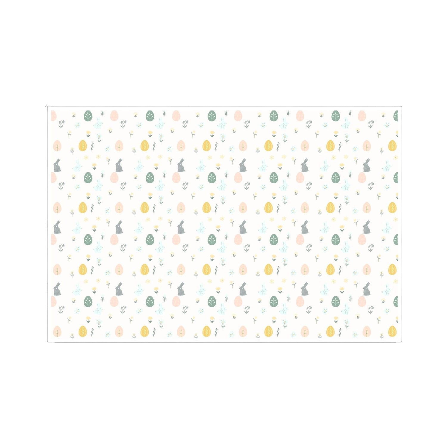 Hârtie de mătase model Paște Grey Bunny & Pastel Eggs 28g – format 50x75cm. Ideală pentru cutii cadou, ambalaje pentru Paște sau prezentări premium. Material reciclabil, plăcut la atingere și ușor de modelat.