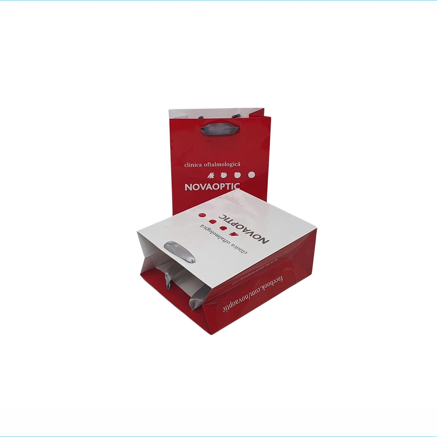 NOVAOPTIC Pungă hârtie personalizată, cu întărituri din carton și mânere din șnur textil