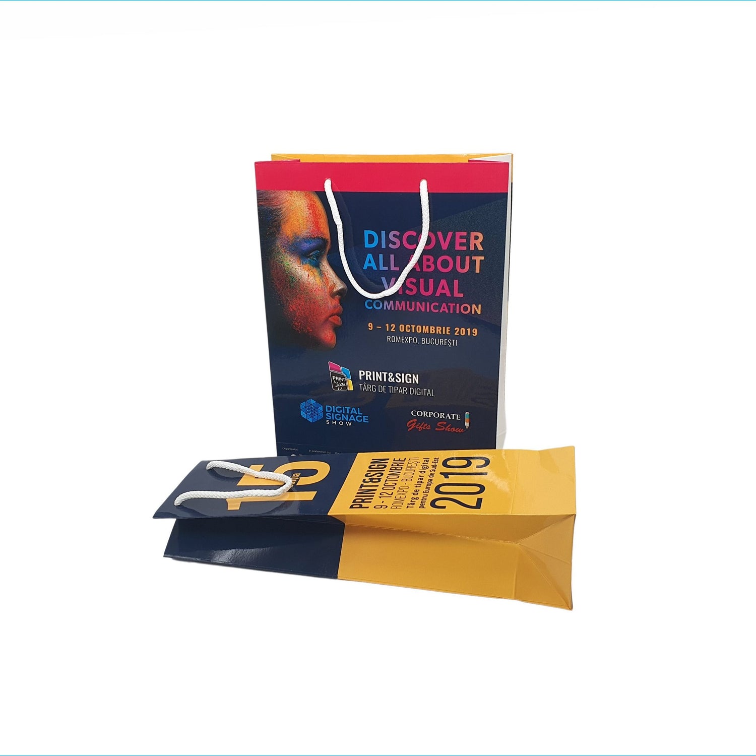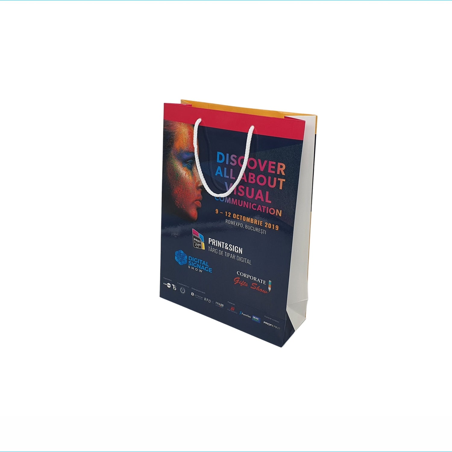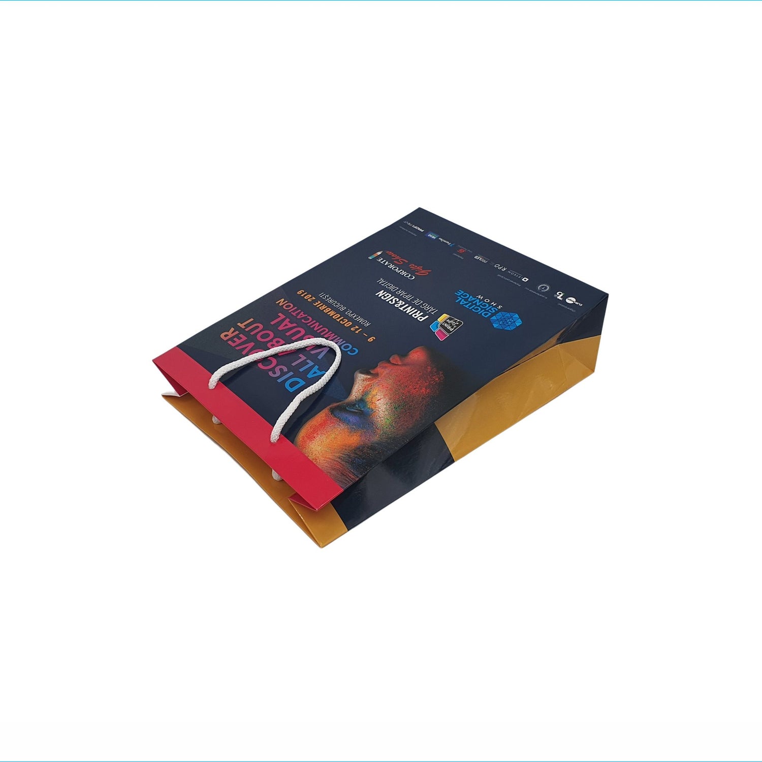PRINT & SIGN Pungă hârtie personalizată, cu întărituri din carton și mânere din șnur textil