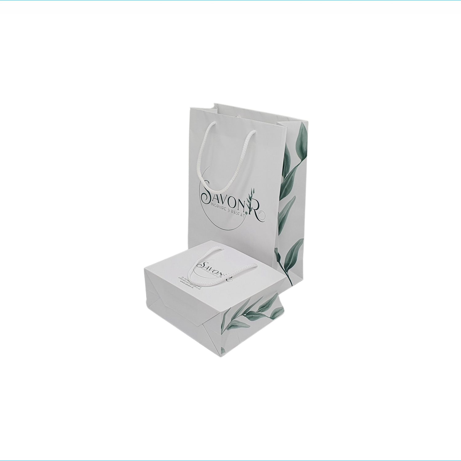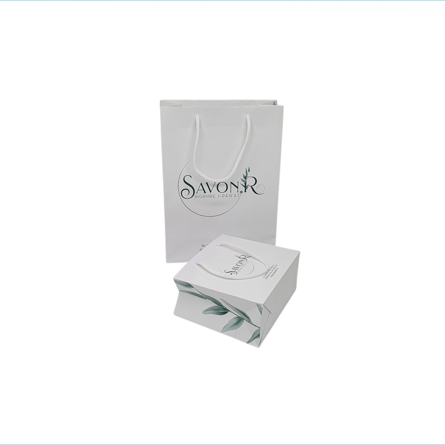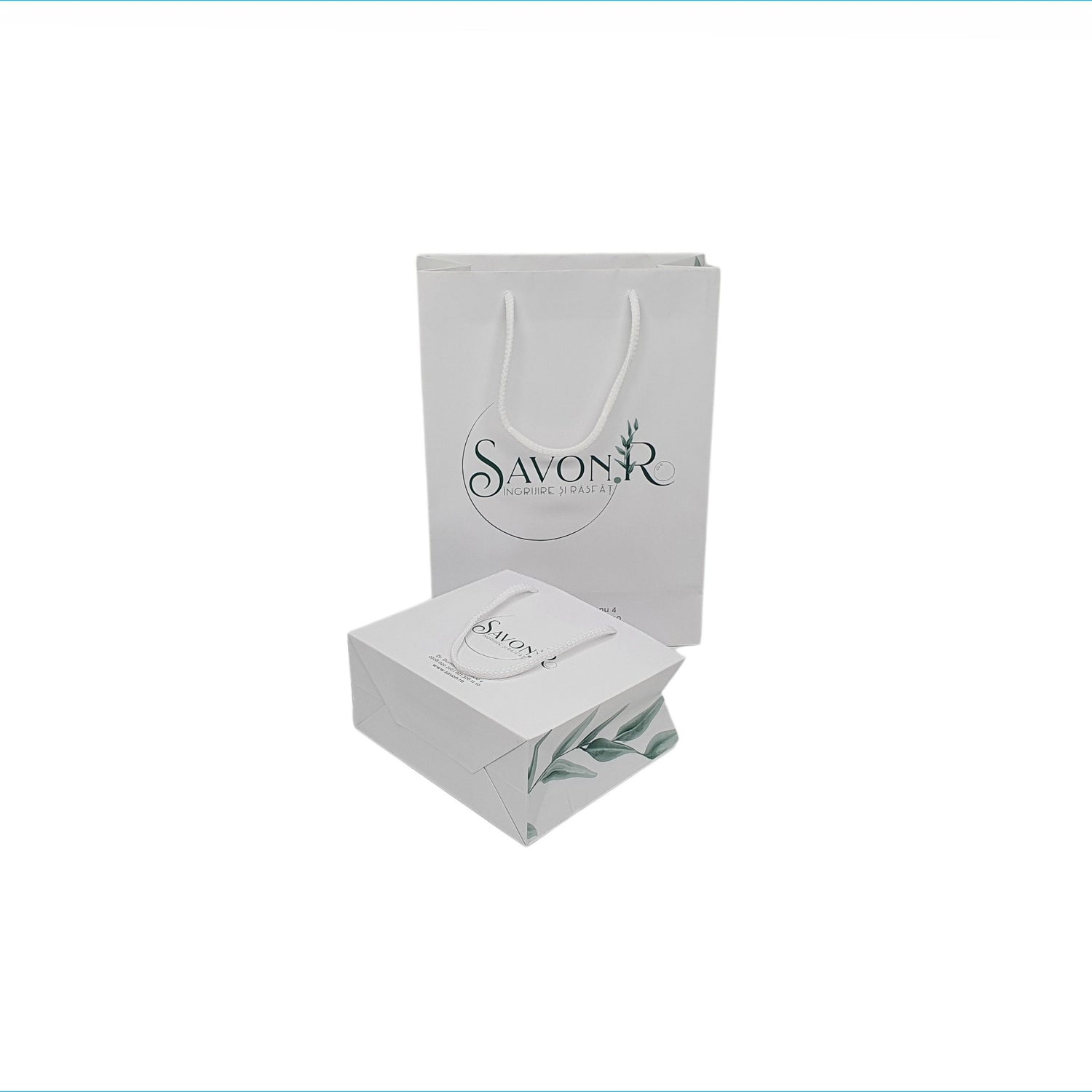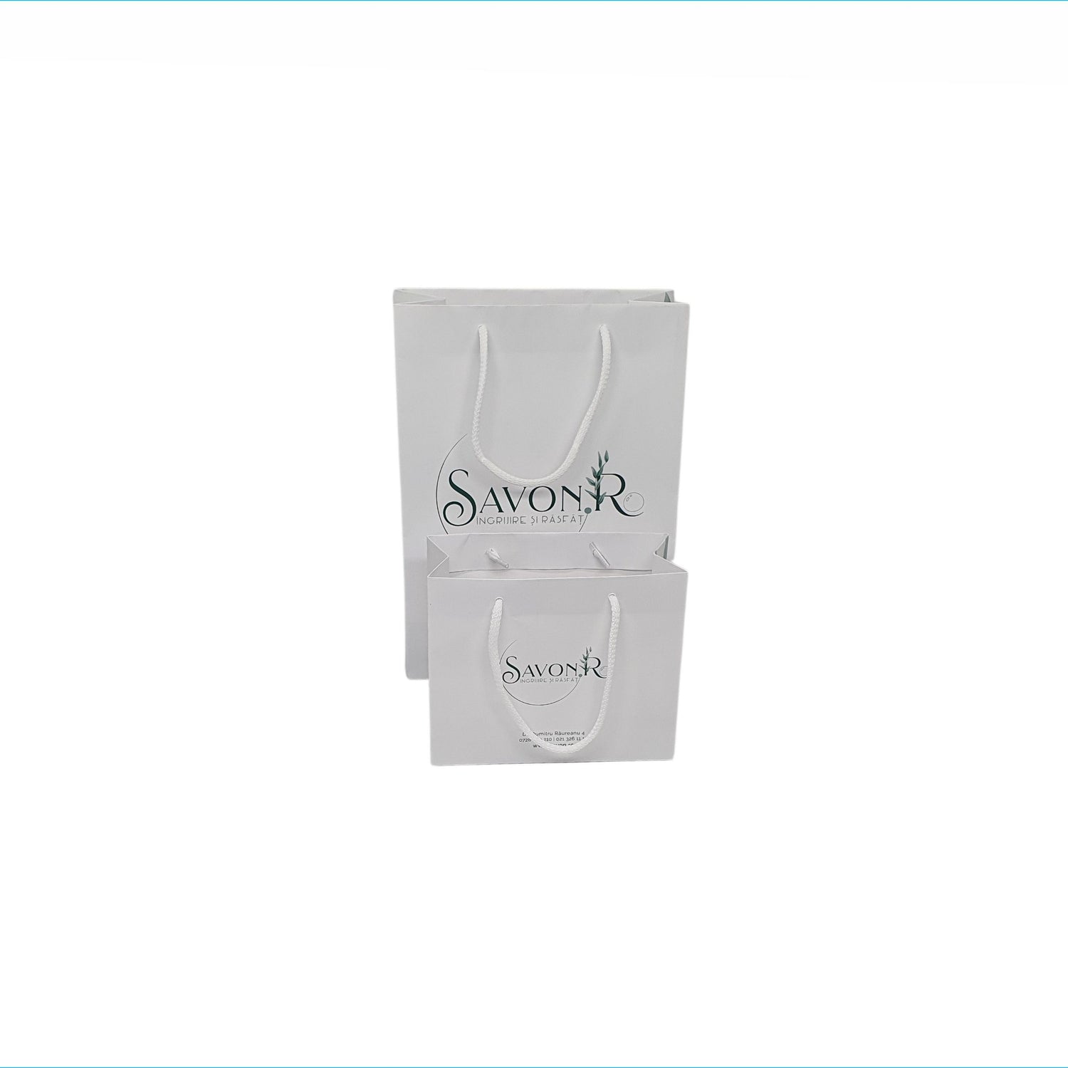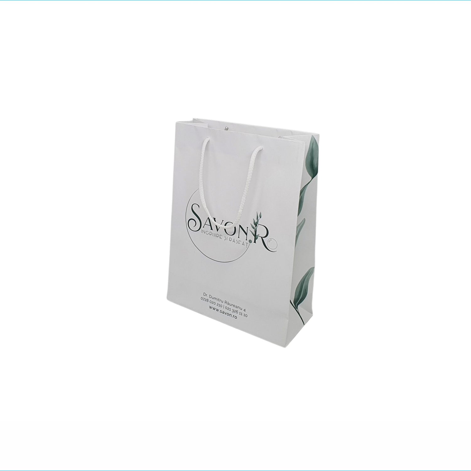 SAVON Pungă hârtie personalizată, cu întărituri din carton și mânere din șnur textil