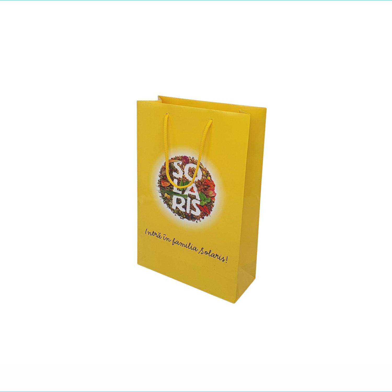 SOLARIS Pungă hârtie personalizată, cu întărituri din carton și mânere din șnur textil