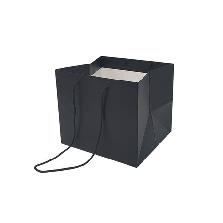 Pungă hârtie NEAGRĂ pentru flori cu mânere din șnur textil 23 x 20(H) x 20cm