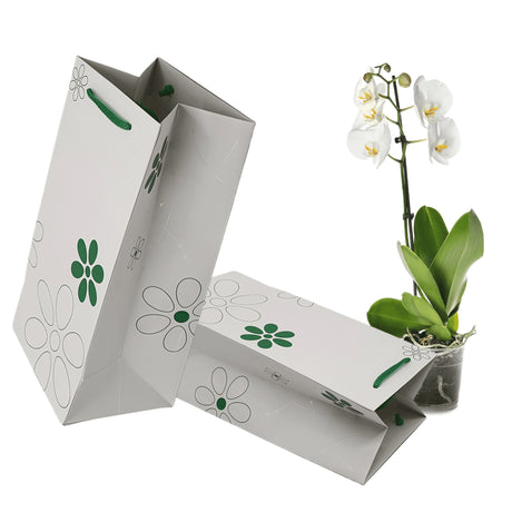 De la 40,00 leiPret pe unitate /Indisponibil Pungă hârtie VERDE pentru flori (ORHIDEE) cu mânere din șnur textil 16 x 33(H) x 13cm
