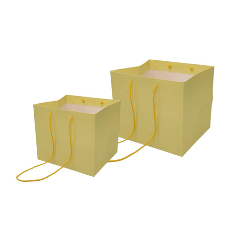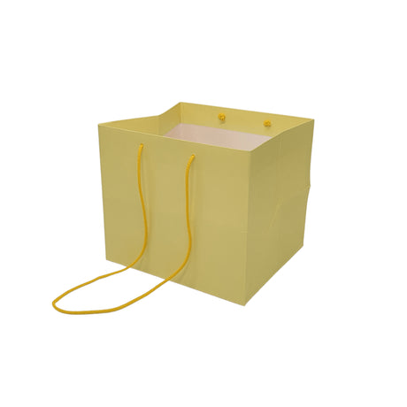 De la 65,00 leiPret pe unitate /IndisponibilPungă hârtie GALBEN PAL pentru flori cu mânere din șnur textil 23 x 20(H) x 20cm