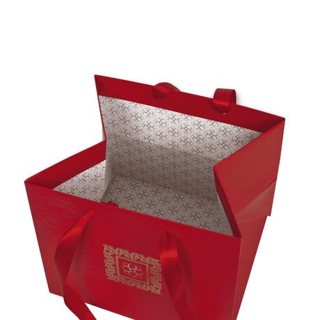 De la 40,00 leiPret pe unitate /IndisponibilPungă hârtie ROȘIE (cu model auriu) pentru flori cu mânere din saten 23 x 20(H) x 20cm