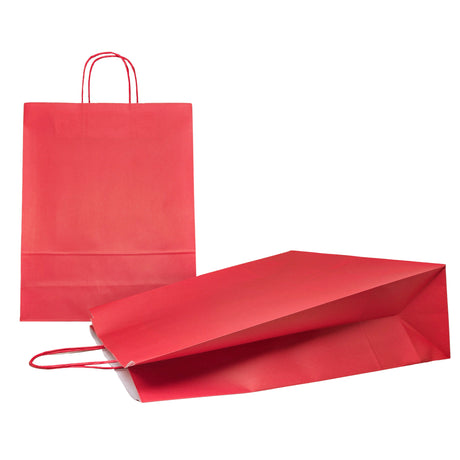 De la 84,00 leiPret pe unitate /IndisponibilPungă hârtie kraft ROȘIE cu mânere din hârtie răsucită 18 x 22(H) x 8cm