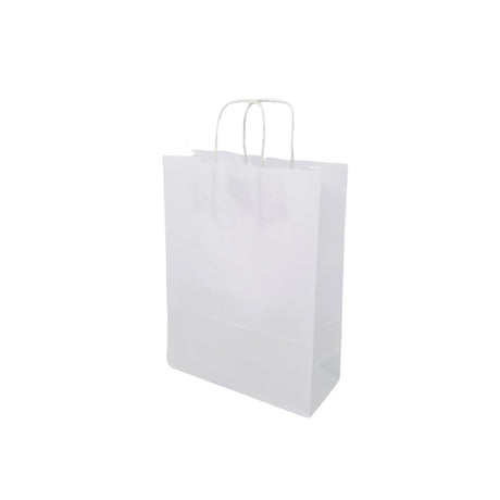 Pungă hârtie kraft ALB cu mânere din hârtie răsucită 18 x 24(H) x 7cm