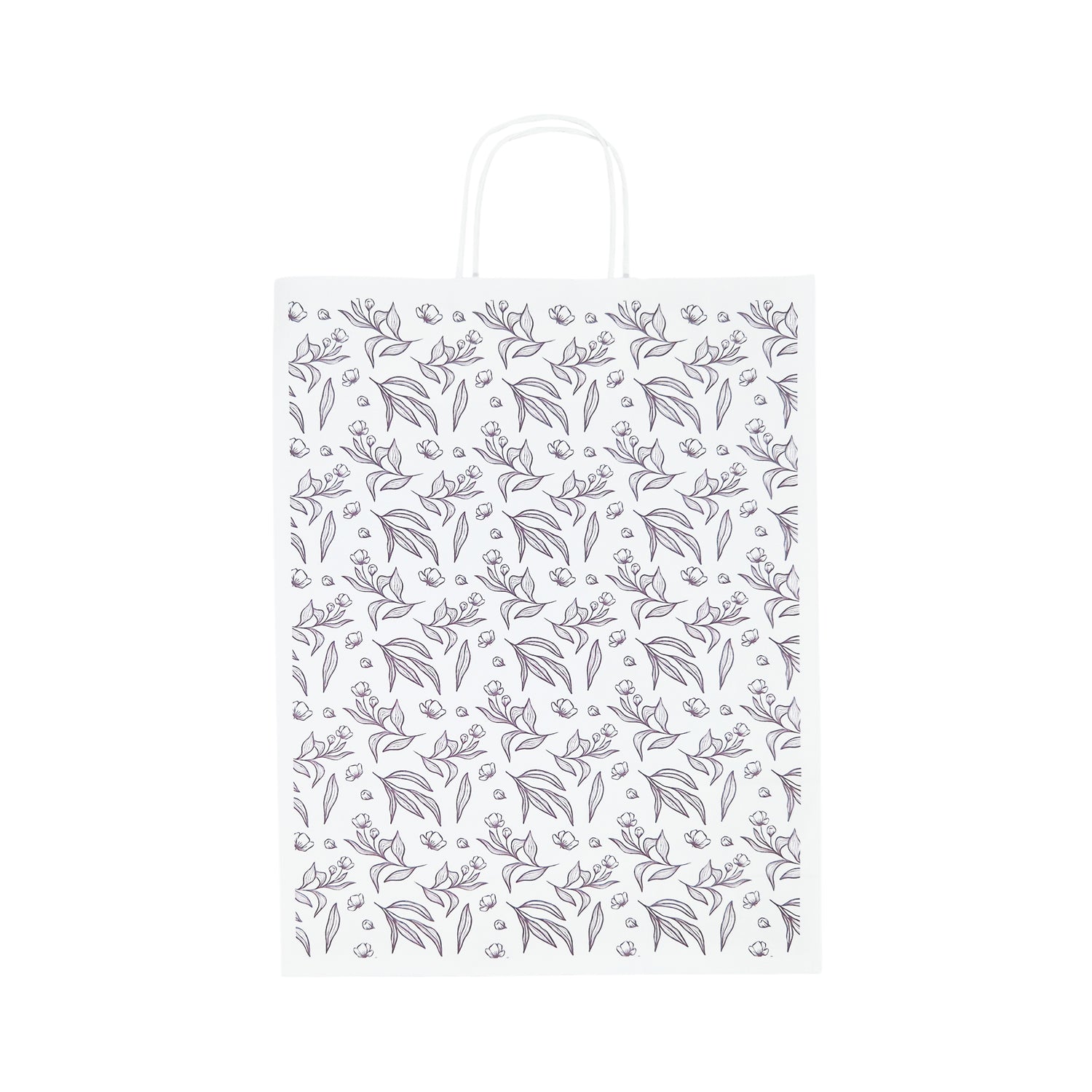 Kraft paper bags with floral patterns are inspired by nature and spring, to bring freshness, color and sustainability to your packaging, offering a natural and vibrant presentation. Made from recyclable kraft paper, these bags are environmentally friendly and are ideal for those who value sustainability. They are made to be resistant and robust, ensuring safe and efficient transportation for a variety of products. Find in our collection floral patterns inspired by nature and spring, with bright and attractive colors, which bring extra joy and optimism. They are ideal for packaging spring gifts, anniversaries, weddings and other special occasions, offering a fresh and cheerful look. They are also perfect for gift shops that want to offer customers a pleasant and nature-inspired shopping experience. You can choose the floral pattern and color that matches the theme of the event or season, to create a harmonious and vibrant visual impact. You can add labels, ribbons or natural accessories to personalize the bags and give them a unique and special touch.Paper and handle color: WHITE with floral patternDimension: 18 x 24(H) + 7cmPaper weight: 100g/sqm – 100% recyclablechoose another size 18 x 24(H) + 7cm 24 x 31(H) x 10cm 32 x 41(H) x 12cm SOME EXAMPLES