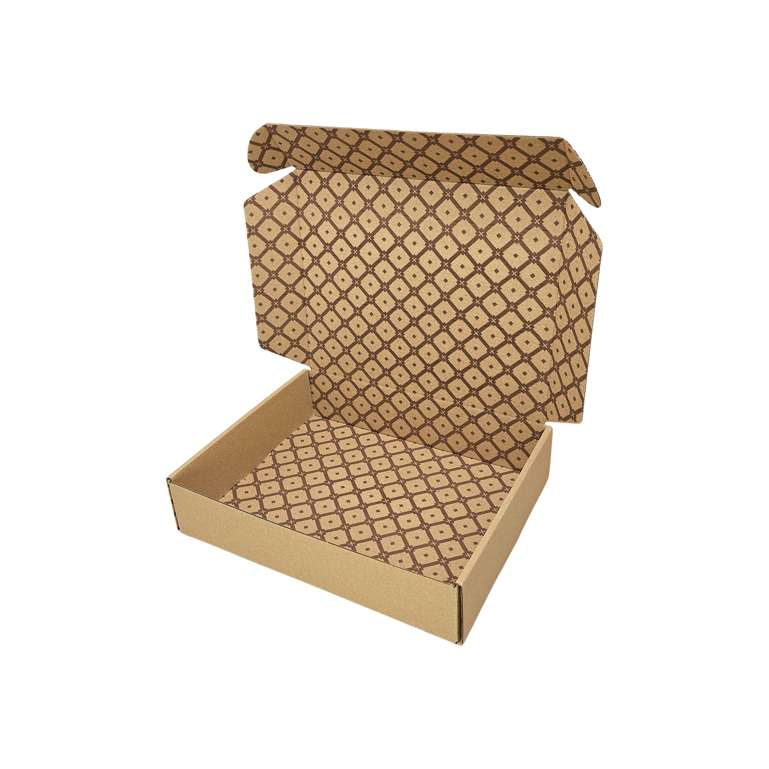 Cutiile cu autoformare din carton kraft natur cu print interior de la Papette.ro sunt ambalaje din carton ondulat, concepute pentru montare rapidă, fără lipici sau bandă adezivă. Aspectul exterior natural este completat de un print interior decorativ, care adaugă un plus de surpriză și valoare estetică la deschiderea coletului.