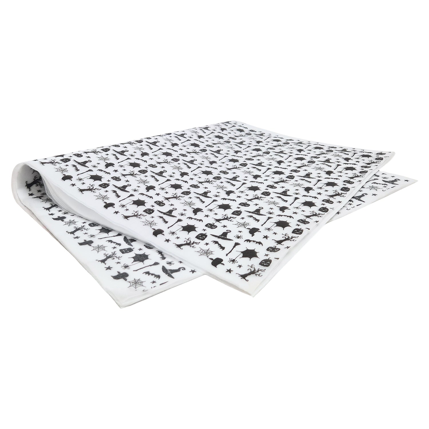 Creează o ambianță misterioasă și plină de farmec cu hârtia de mătase cu model Halloween, perfectă pentru ambalaje tematice și proiecte creative de sezon! Cu imprimeuri inspirate din simbolurile toamnei și ale sărbătorii de Halloween — dovleci, lilieci, păianjeni și fantome — această hârtie adaugă un plus de originalitate și spirit festiv oricărui cadou sau decor.