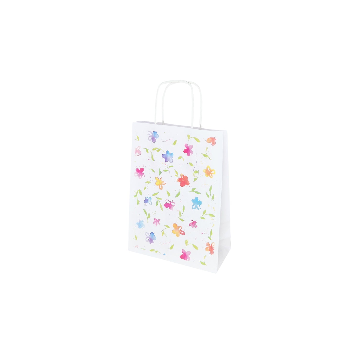 Pungile din hârtie kraft cu modele florale sunt inspirate de natură și primăvară, pentru a aduce un plus de prospețime, culoare și sustenabilitate ambalajelor dvs., oferind o prezentare naturală și vibrantă.